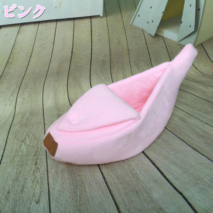猫ベッド 犬ベッド ペットベッド 猫 犬ハウス 可愛い 寝袋 四季通用 PP綿 保温 防寒 洗える サイズXL90*30*20バナナ型 ☆ピンク