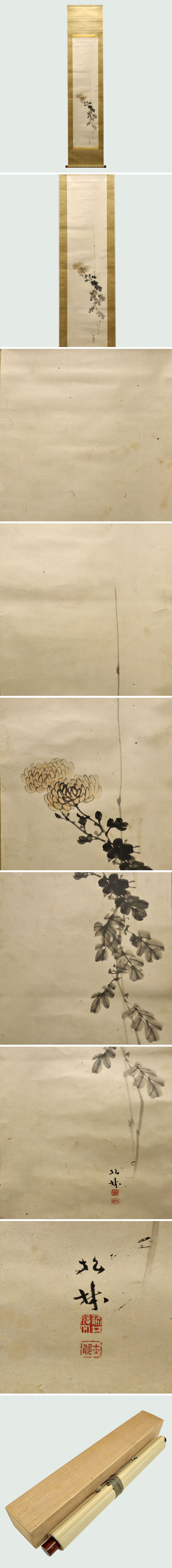 真作保証 藤井松林 菊の図 紙本 箱 備後 掛軸 書画 骨董品 美術品 4654lqN 收藏