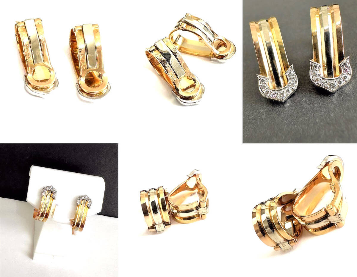 レア 極美品 CARTIER カルティエ 2C ダイヤモンド イヤリング スリーカラー K18 YG PG WG ゴールド パヴェ ダイヤ 男女 ピアス 收藏
