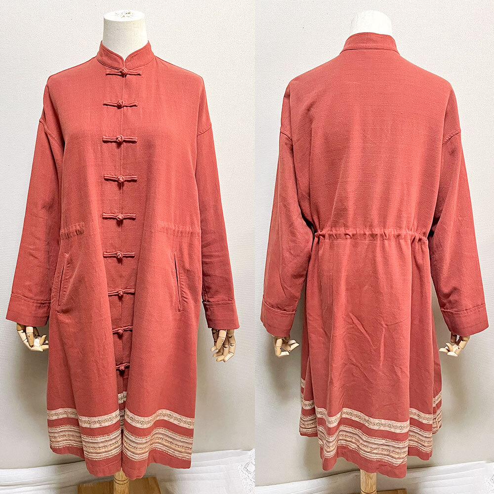 powder パウダー 下迫秀樹 インド綿 厚手 チャイナシャツ 刺繍 ウェストドロスト マオカラー ワンピース ピンクハウス 收藏