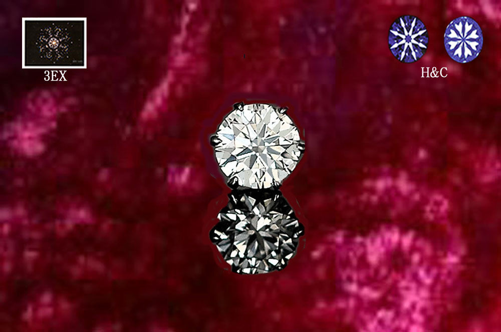 | 天然ダイヤモンドの輝きに影響するカットを特に重視し、 厳選したトリプルエクセレント(3EX) H&Cカットの 輝き際立つダイヤを使用し制作しました。 |