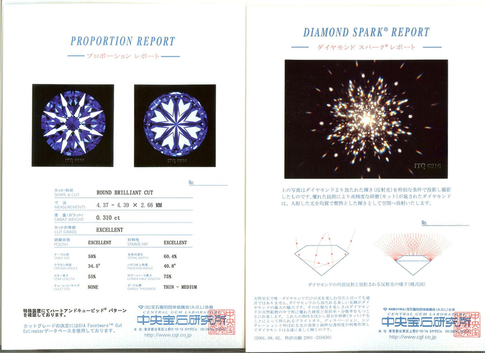 | カット:エクセレント(3EX) ハートアンドキューピット(H&C)中央宝石研究所 鑑定書付 |