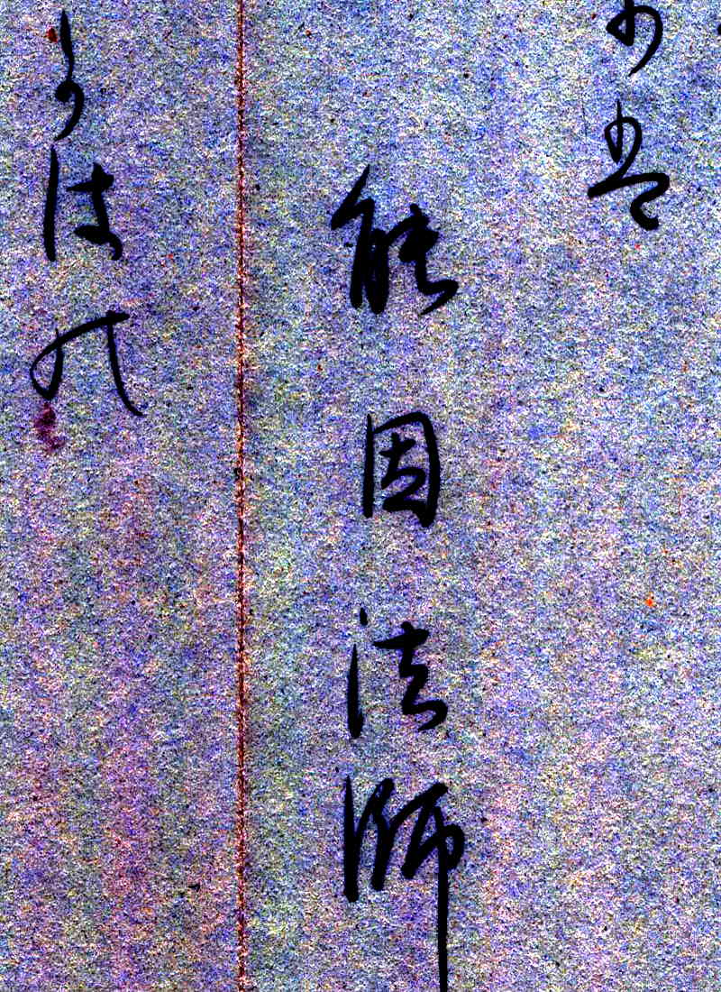 入手したものであることがわかりました。日本の和紙は(す)く製法であるため和紙の繊維が断層画像写真によって一本一本が立体的に見えます。オランダ渡来の髪と性質が異なるのはこのためです。は茶会用の掛軸から外され海外展示のために再表装をしております。掛軸や屏風にすることが可能なように、「Removable Paste(再剥離用糊)」を使用しているため、自筆の書に影響をあたえずに、容易に「剥離」することができるような特殊な表装となっております。 |