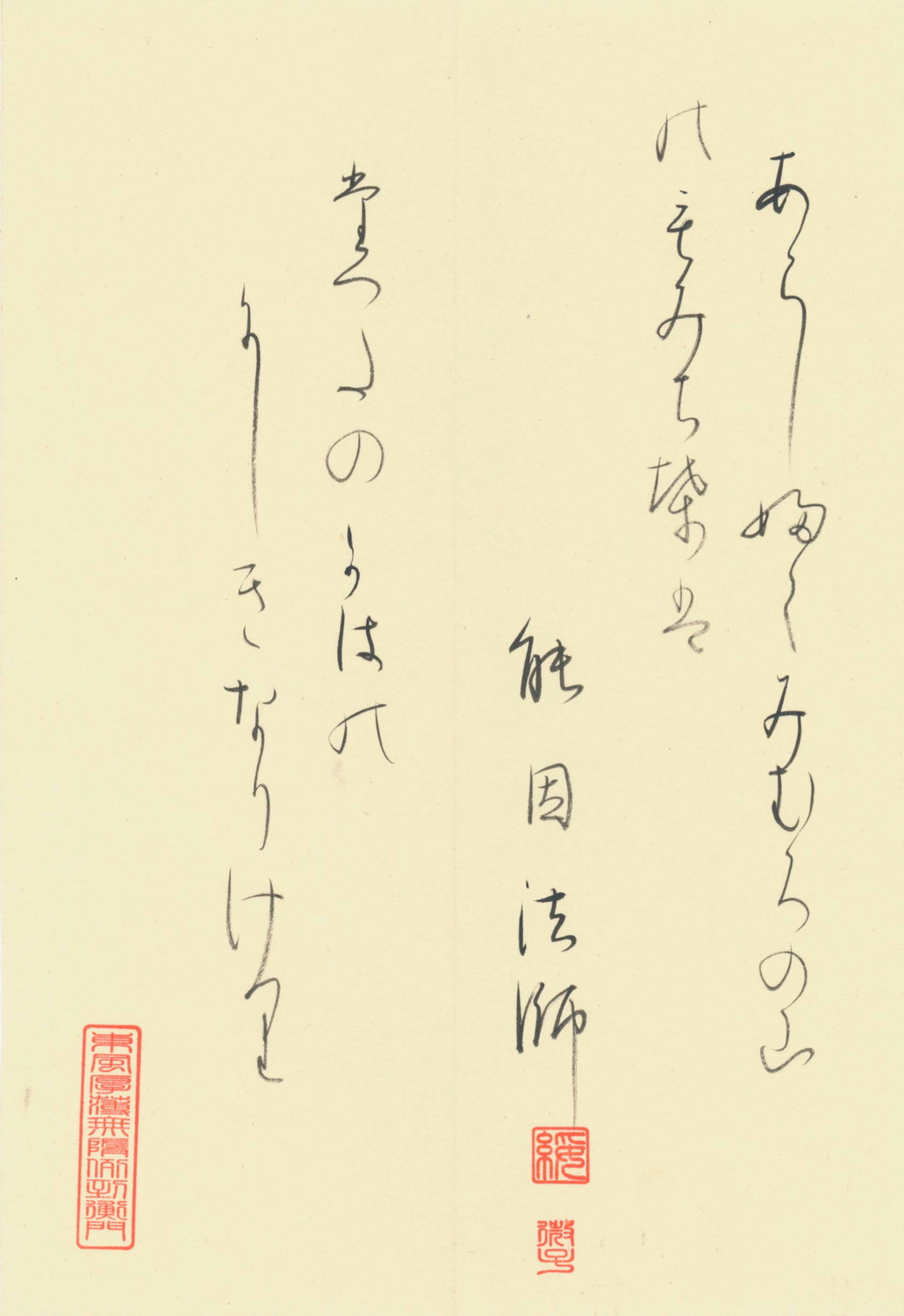 伊達徽子(のりこ)・自筆「百人一首」の和歌の書を出品いたしました。出品以外の所蔵品を紹介した出品者のホームページ「源氏物語の世界」をご覧ください。 ツイッター「源氏物語の世界」 も合わせてご覧ください。 |