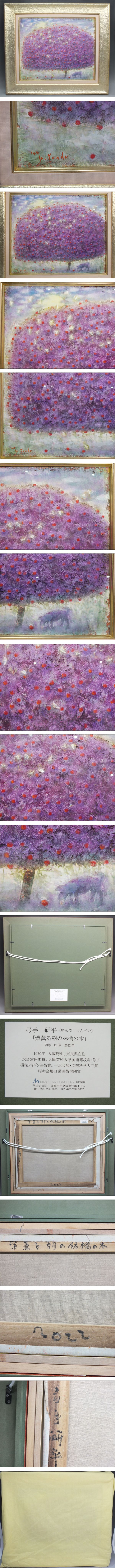 真作保証 弓手研平(ゆんで けんぺい)『紫薫る朝の林檎の木』油彩 F8号 2022年 豪華額装 | |||