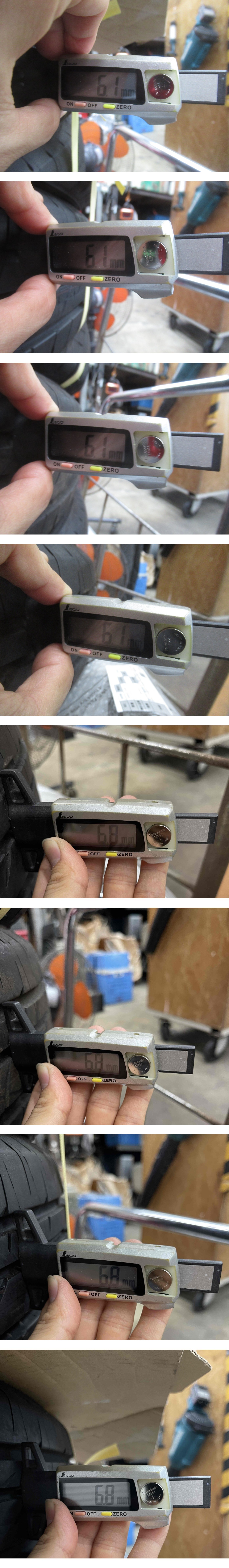 外在庫品のため汚れ多数小傷有/現状出品/ノークレームノーリターン/赤線が薄いので、走行品扱いでお願いいたします。/単品仕入れ品のため詳細不明/溝は外側6.1/真ん中6.8です。