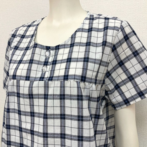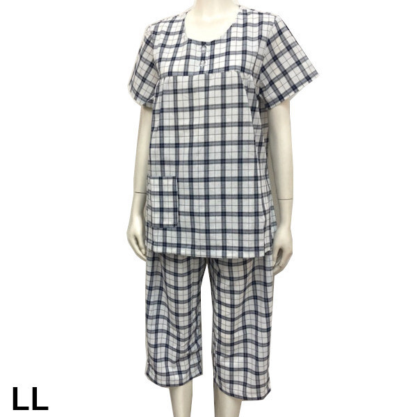 即決新品 レディース 半袖 7分パンツ 上下 ルームウエア オフホワイト チェック LL パジャマ 送料無料 收藏