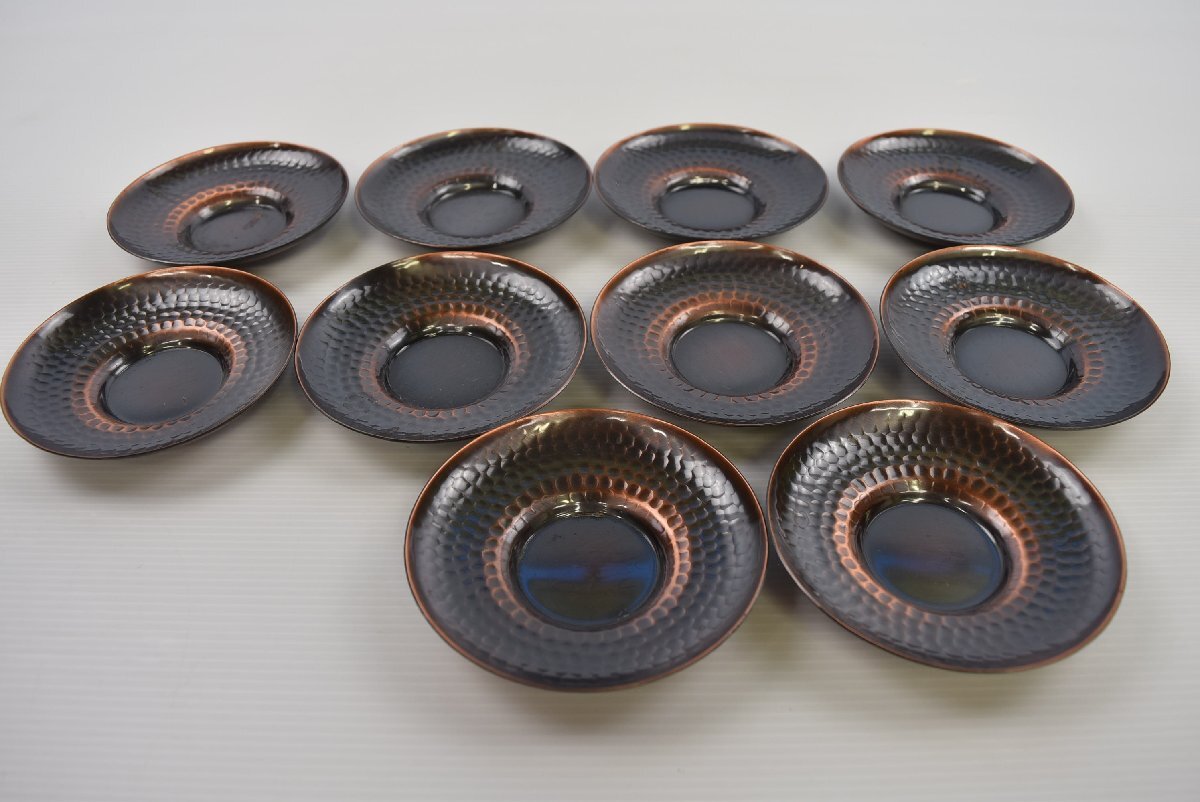 A-653 中古 ジャンク品 飛鳥堂 純銅 小皿 10枚セット 合計約1キロ 直径約12cm 茶托 食器 茶道具 和食器 来客用 現状品 まとめ売り 收藏