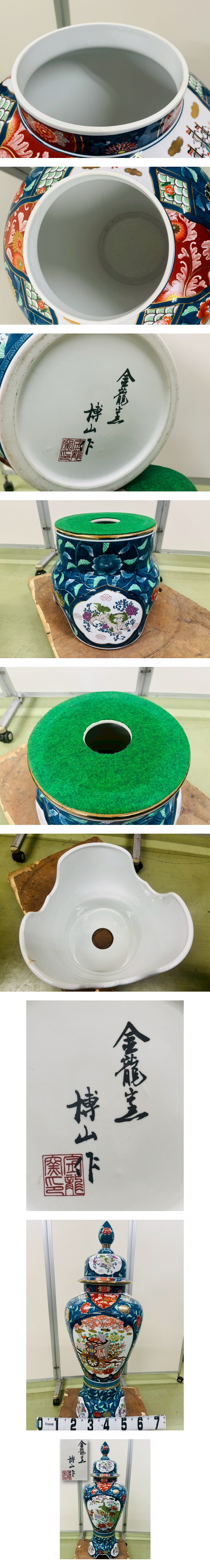有田焼 金龍窯 博山作 高さ約118cm 色絵花鳥図 沈香壺 染錦 骨董 置物 飾物 日本伝統工芸品 古美術 時代物 初出 売切 長崎買取 收藏