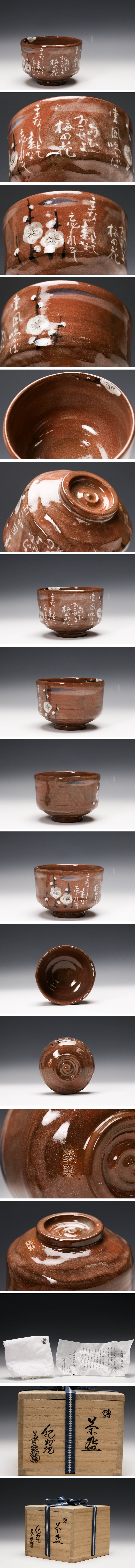 【佳香】二代 寒川栖豊 紀州焼 葵窯 語茶碗 共箱 共布 栞 茶道具 本物保証 收藏