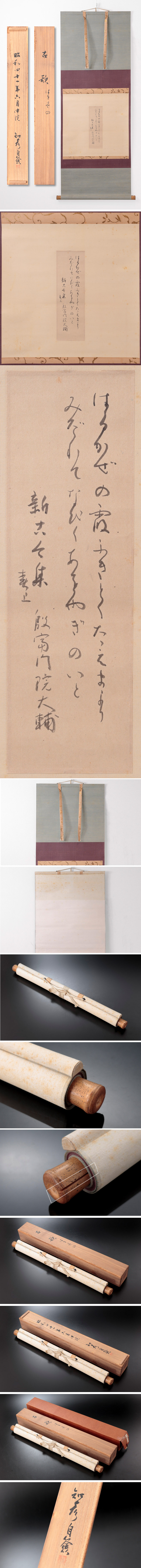 【古美味】堀江知彦 自賛 古歌 殷富門院大輔「はるかぜの~」軸装 茶道具 保証品 |