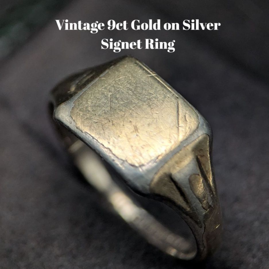9金張り × シルバー925 英国製 ヴィンテージスクエアリング 12.5号 9ct刻印 イギリス アンティーク 9K リング アクセサリー ヴィンテージ 收藏