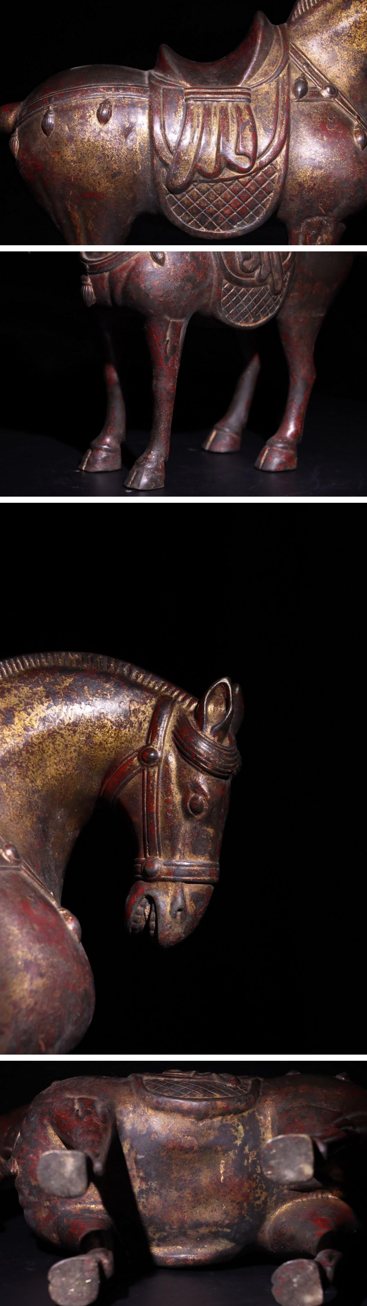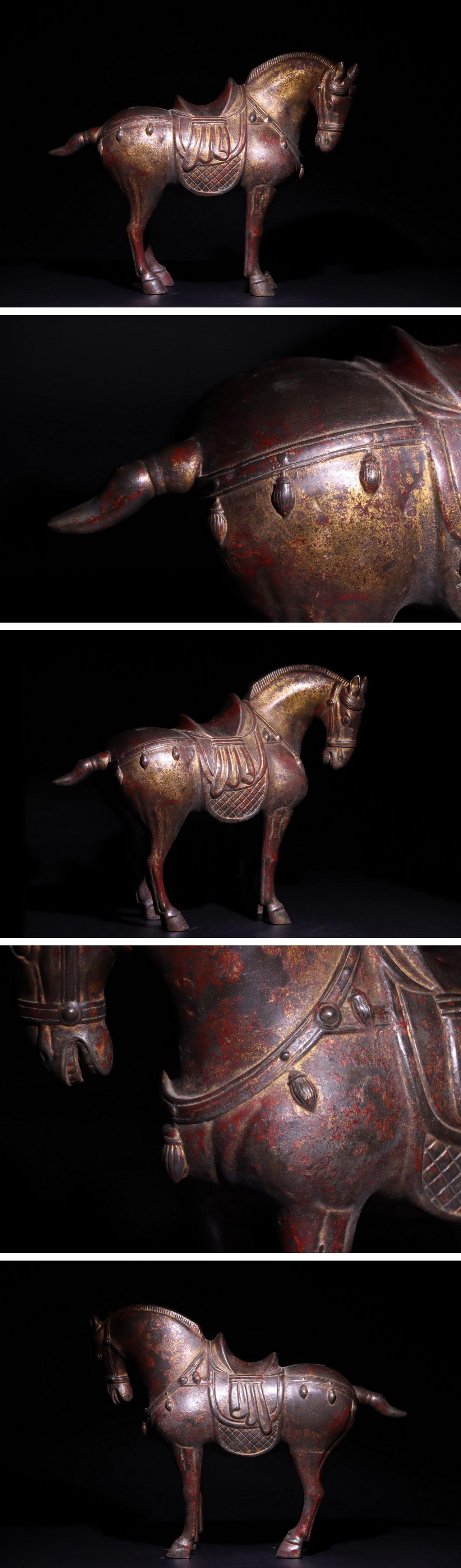 【清】某有名オークション購入 清時代 銅金 戦馬案頭置物 当時物 古置物 古擺件 古美術 時代コレクション7L9-YF3 收藏