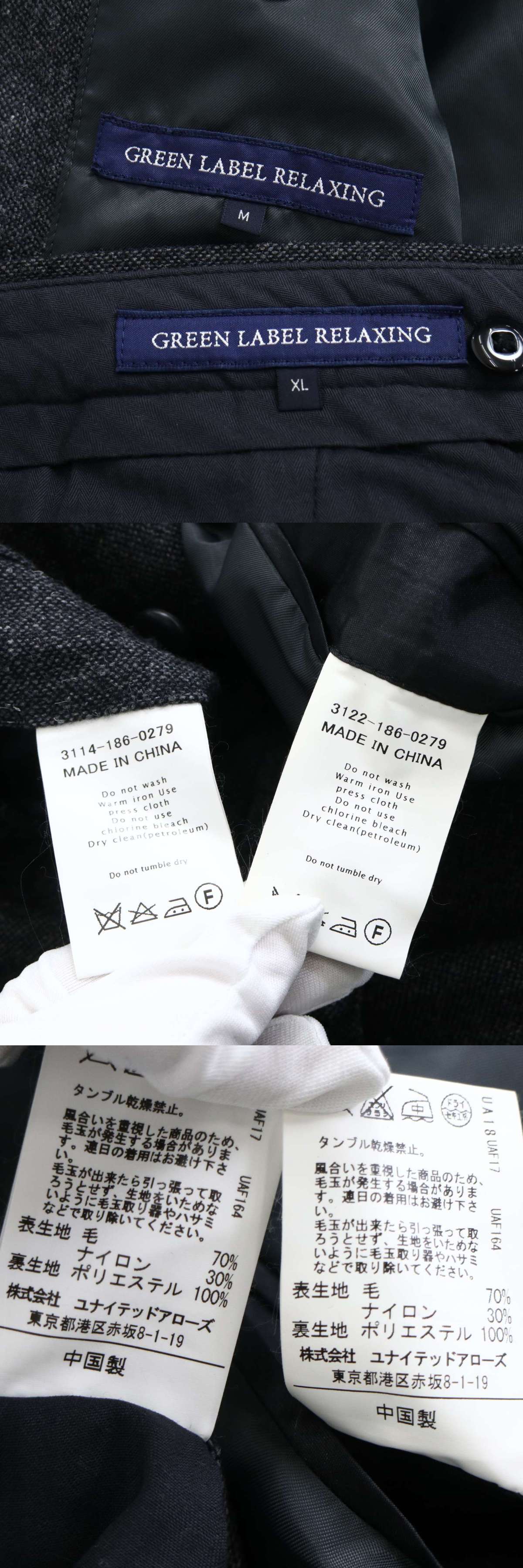 GREEN LABEL RELAXING ユナイテッドアローズ 秋冬★ ウール ツイード セットアップ スーツ Sz.M/XL メンズ グレー 收藏