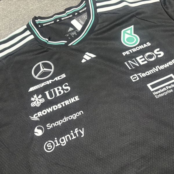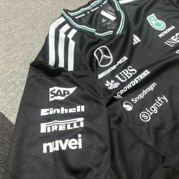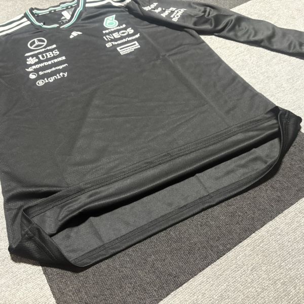 ●新品使用未開封 2025 オーセンティック メルセデス AMG ペトロナス F1 ロングTシャツ ブラック になります。 ●サイズは『 2XLサイズ 』になります。 身幅:59cm 着丈:75cm 誤差はあります。(平置き水平測定) ●生地&プリントともに質感のあるとてもいいシャツです。 ・こちらはオフィシャルではありませんのでご注意ください。