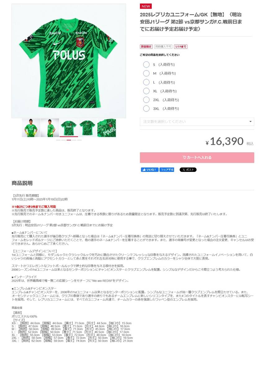 紙タグ付き未使用【即決 送料無料】NIKE正規品 浦和レッズ 2025 GK 半袖 ユニフォーム L Jリーグ サッカー 西川周作 牲川歩見 1024-5 收藏