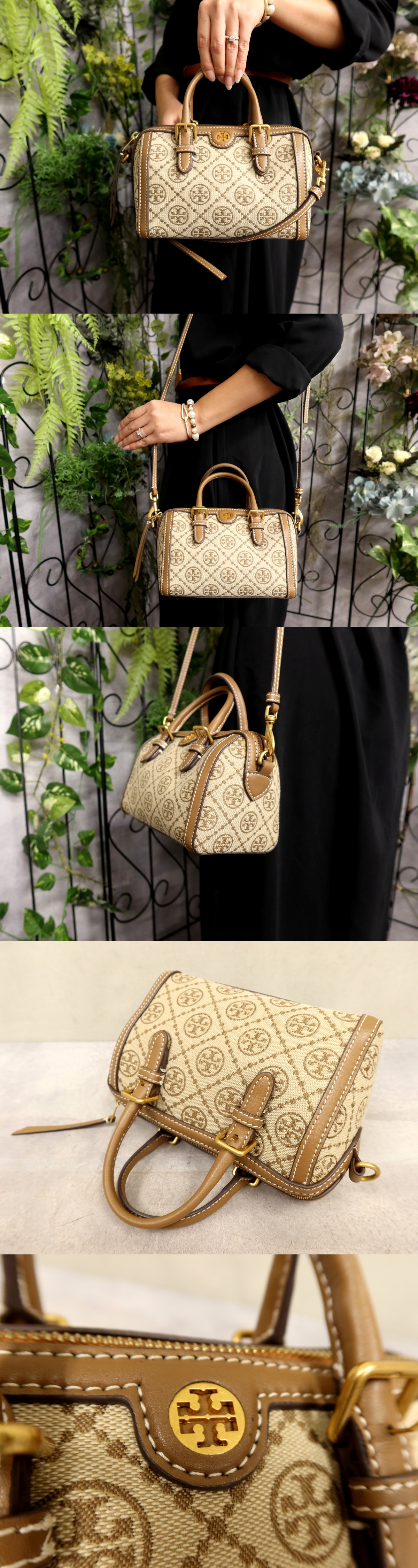 ●超美品●TORY BURCH トリーバーチ●Tモノグラム●キャンバス カーフ レザー 本革●2way ハンド バッグ●ブラウン系●G金具●Js61419 收藏