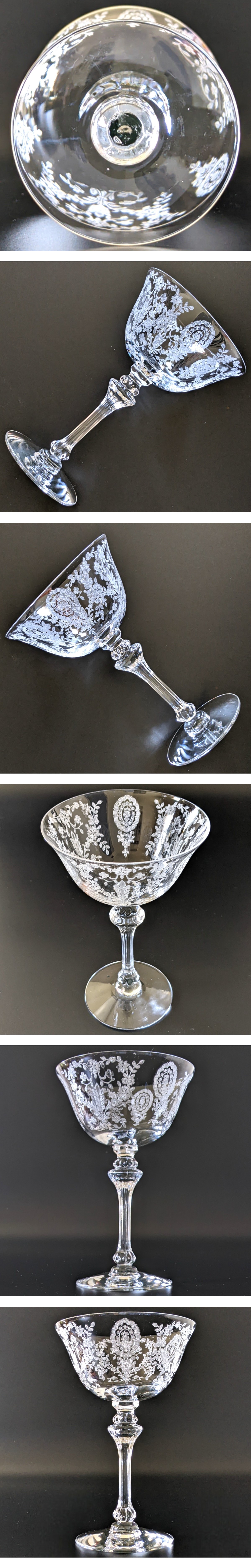 【極美品】ティフィン クリスタルグラス ジューンナイト シャンパングラス メダリオン エッチング 1940年代 Tiffin 421 |