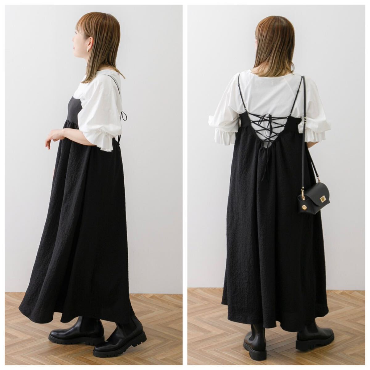 新品 アーバンリサーチ SonnyLabel ビスチェ ギャザー ワンピース 定価8910円 黒 FREE キャミソールワンピース 收藏