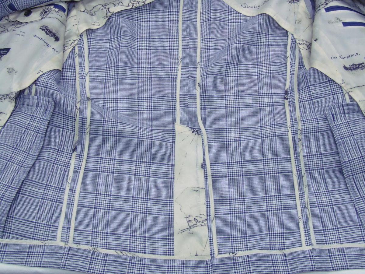 ジャケットの先駆者として全米で「ミスタースポーツコート」と呼ばれたStanleyBlacker。 彼のもの作りに対する哲学は今も受け継がれています。 特徴 ・表は目立たない高級品の証コバステッチ付き ・夏快適な素材で1枚仕立てで快適 ・胴裏・中釦・袖釦何れもブランドのロゴ入り。 ・袖裏も本格的なキュプラ仕様。 シーズン:春夏 サイズ:AB5(胸回96・腰回86・身長170) 上着デザイン:シングル段返り3釦 ベンツ:センターベンツ 裏仕様:夏でも快適な1枚仕立て 色:グレー 柄:格子柄 表素材:麻59/毛41 胴裏:ポリエステル100 袖裏:キュプラ100 縫製:MADE IN P.R.C 詳細な寸法 上着:胸囲114・胴囲101・着丈72・肩幅46.5・袖丈60 上記記載の数字は何れもcmになります。 | ||||