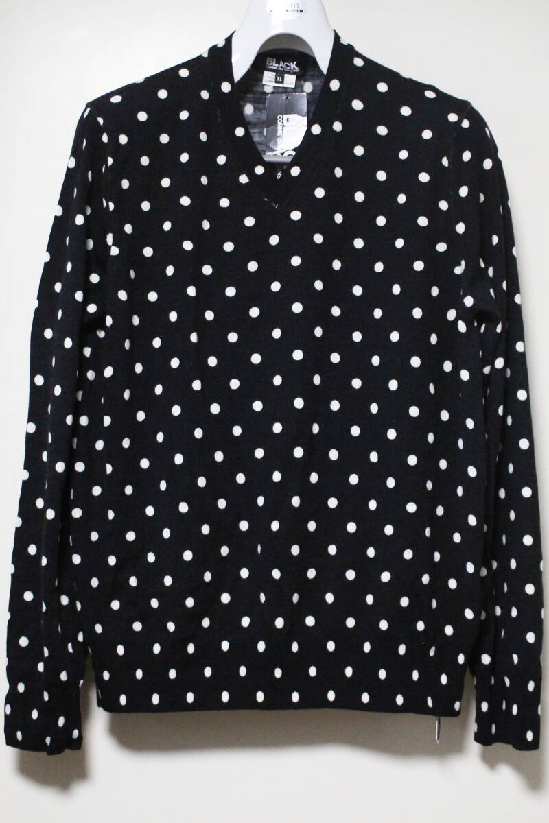 未使用 XLサイズ ブラックコムデギャルソンポルカドットウールニットVネックセーター2014年秋冬アーカイブ BLACK COMME des GARCONS 2014AW 收藏