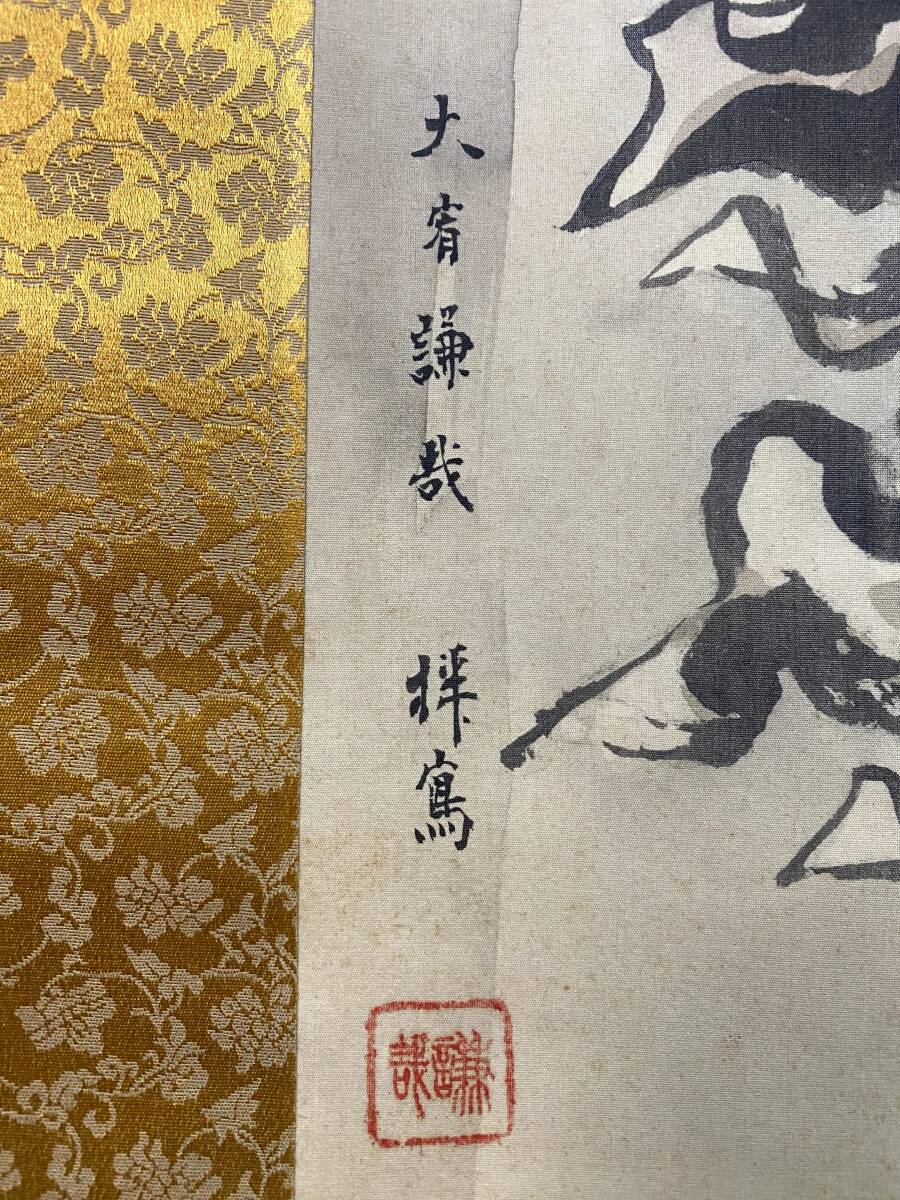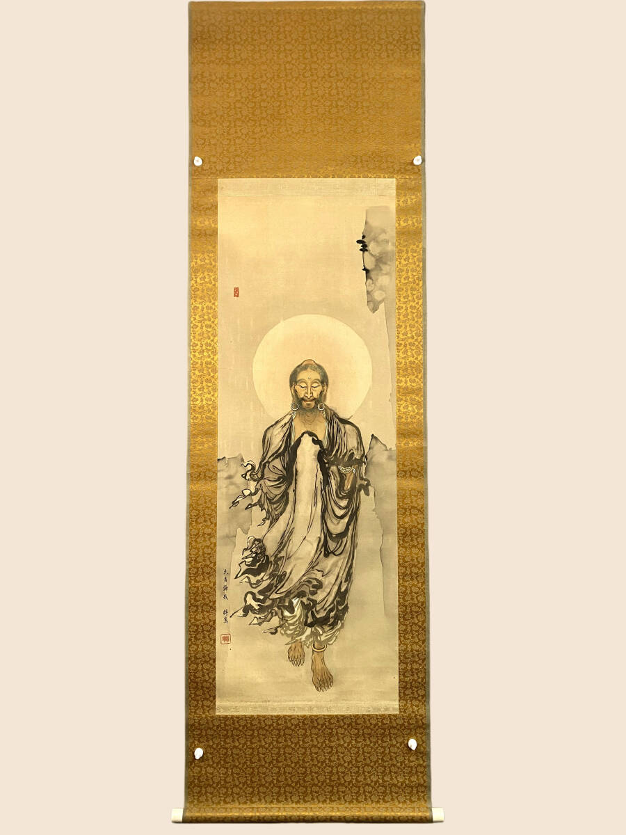 掛軸の軸先ですが、配送中の振動・気温・経年劣化等で外れてしまうことがあります。軸先の外れは、返品の対象にはなりません。大変お手数ですが、お客様ご自身での修復をお願い致します。