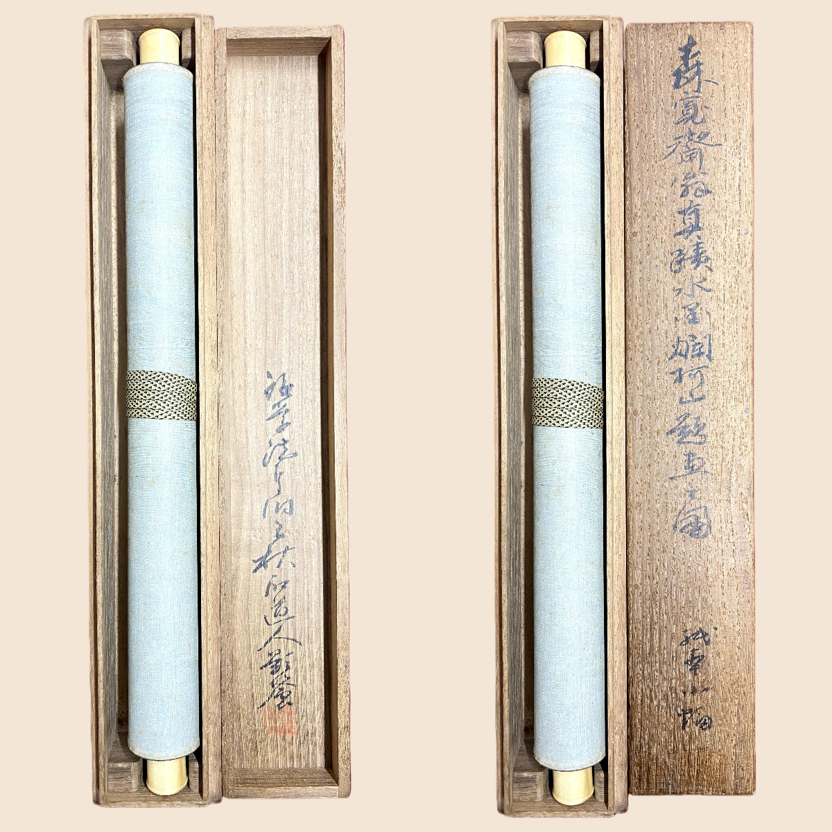 掛軸の軸先ですが、配送中の振動・気温・経年劣化等で外れてしまうことがあります。軸先の外れは、返品の対象にはなりません。大変お手数ですが、お客様ご自身での修復をお願い致します。