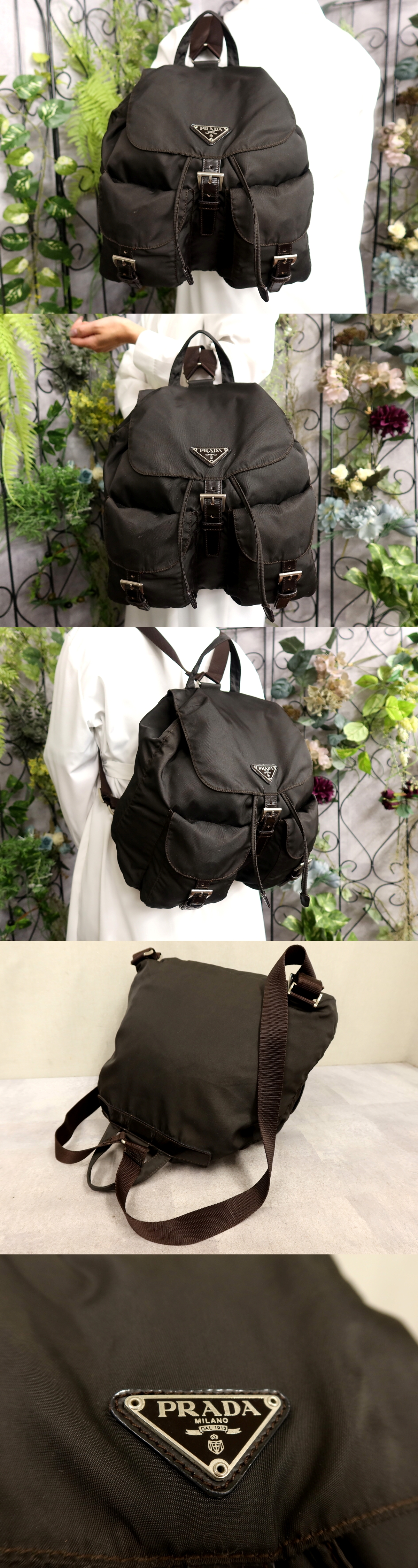 ●超美品●プラダ●三角ロゴプレート●ポコノ ナイロン カーフ レザー 本革●リュックサック●ダークブラウン●ヴィンテージ●B5●Js61563 收藏