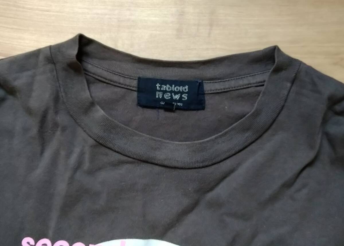 tabloid news タブロイドニュース メンズ 長袖Tシャツ 濃いグレーにイラスト入 M 古着 收藏