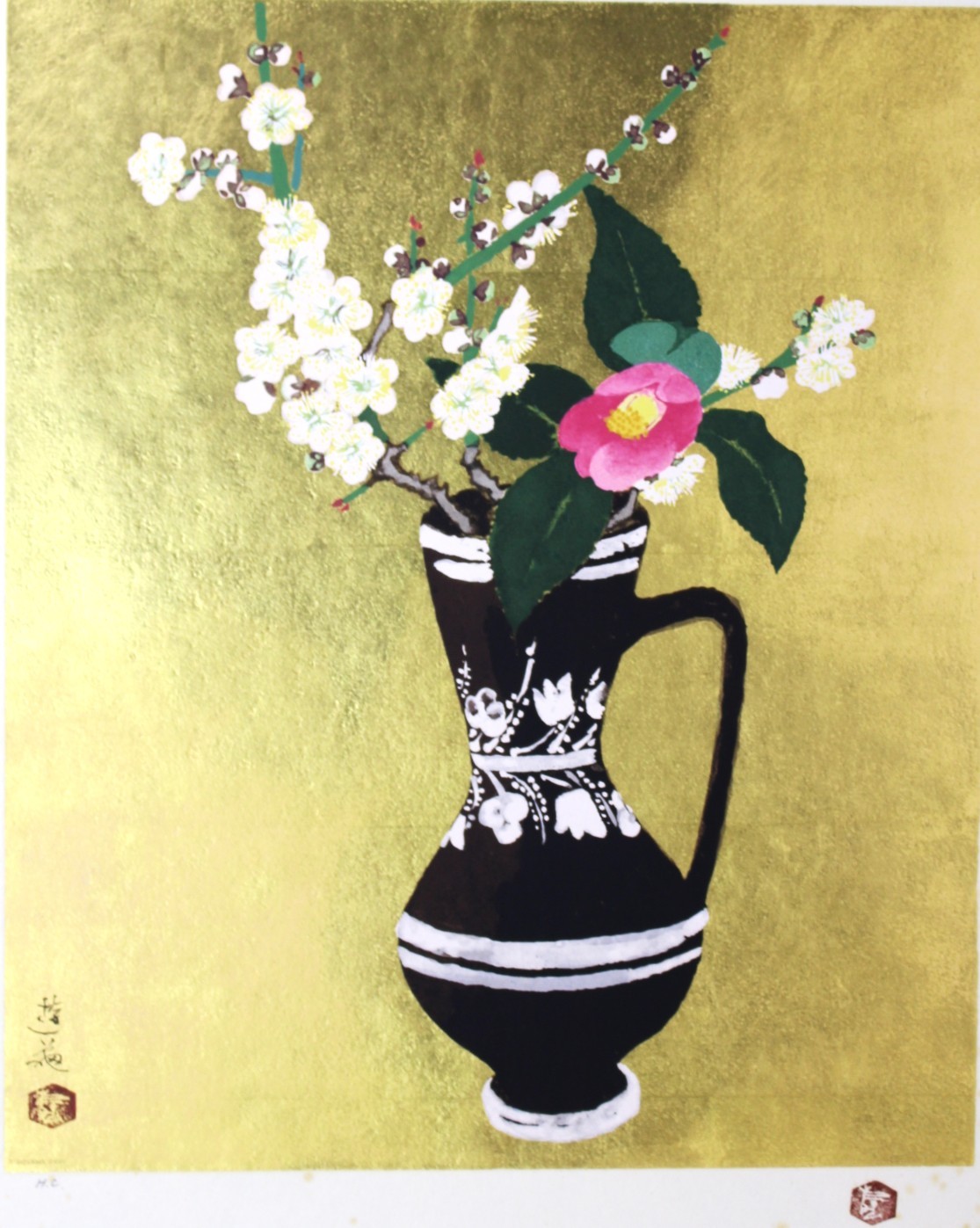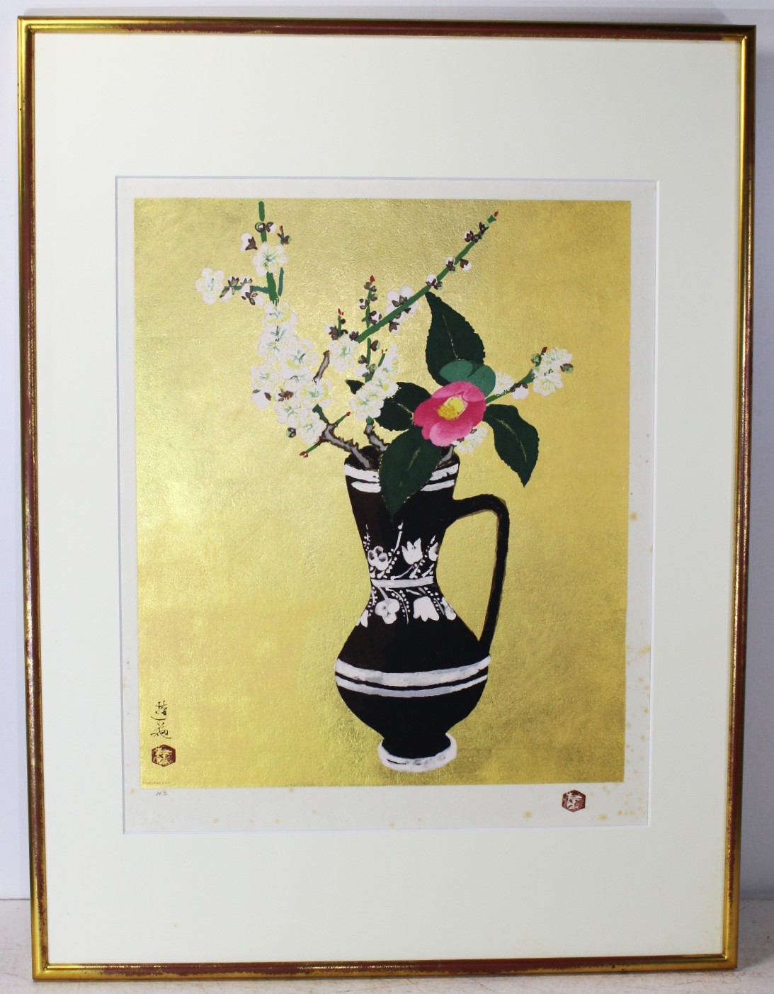 《工藝》★小倉 遊亀【山椿さく】額装 *文化勲章*勲三等瑞宝章*文化功労者*日本芸術院*美術院理事長*T SOYAMA GRAV*滋賀.物故*[桃] 收藏