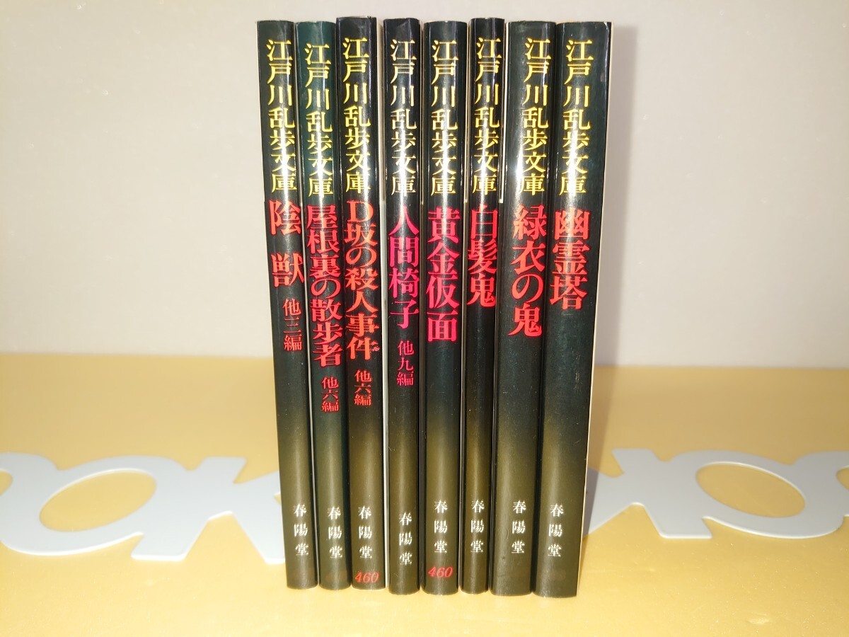 江戸川乱歩 陰獣、屋根裏の散歩者、D坂の殺人事件、人間椅子、黄金仮面 、白髪鬼 、緑衣の鬼 、幽麗塔、の春陽文庫8冊 收藏