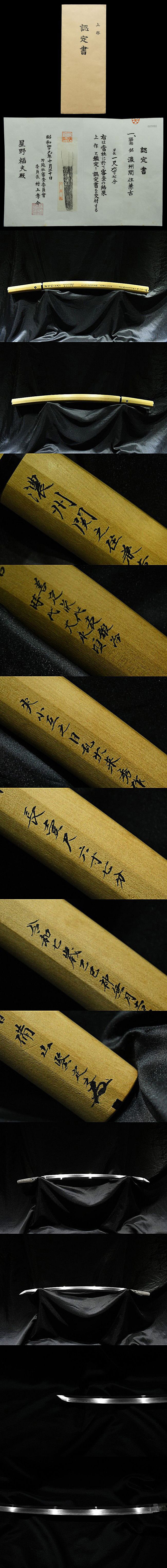 説明:古い蔵に保管されていた脇差です。銘・濃州関住兼吉で、刀苑社審査認定の一振りです。