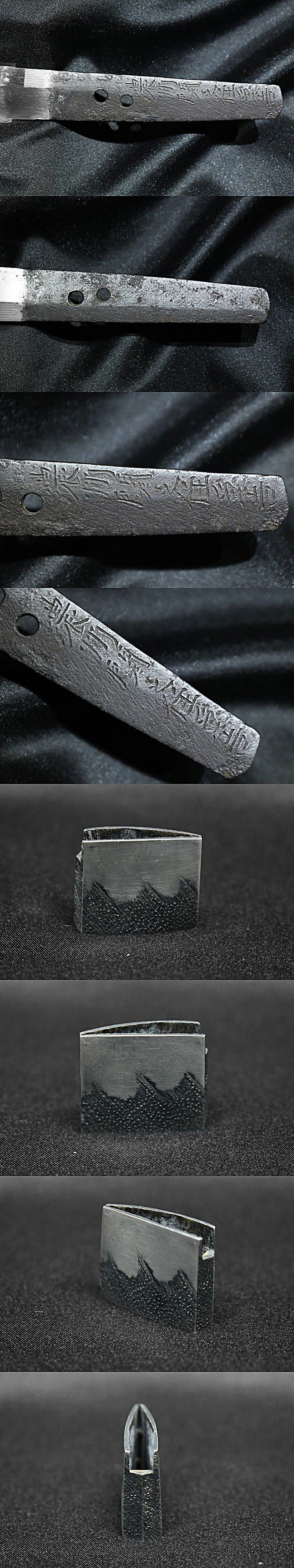 表【濃州関住兼吉】 裏【-】 種別:脇差 サイズ:長さ一尺六寸七分五分(約50.6cm) 反り:0.4cm 目くぎ穴:2個 元幅:約 2.784cm 元重:約 0.624cm 先幅:約 1.936cm 先重:約 0.401cm 刀身重量:約 400g(ハバキ・柄をとった状態) ハバキ重量:約 27.6g 鞘全長:約 76.5cm 送料:2000円 |