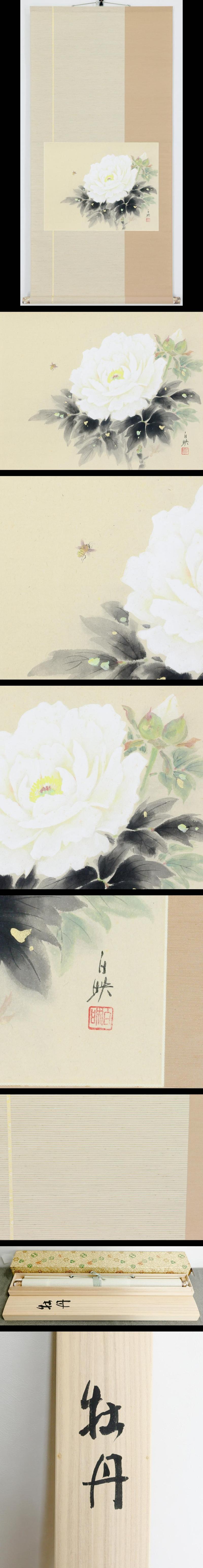【真作】【WISH】久芳白映「牡丹」日本画 金泥仕様 掛軸 共箱 優雅に咲く白牡丹、静寂の美 〇師:久芳道信・久芳冬斧 #25100064 收藏