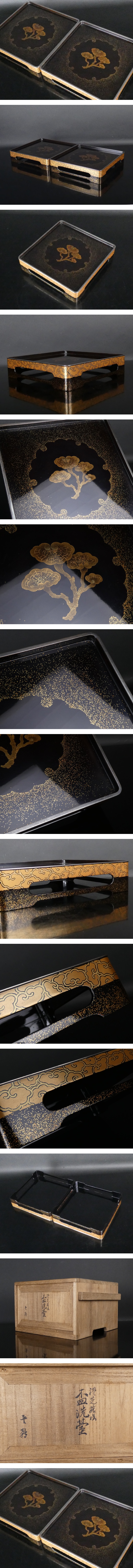【都屋】時代 銀縁 研ぎ出し蒔絵 盃台 一対 霊芝蒔絵 R193 1116 收藏