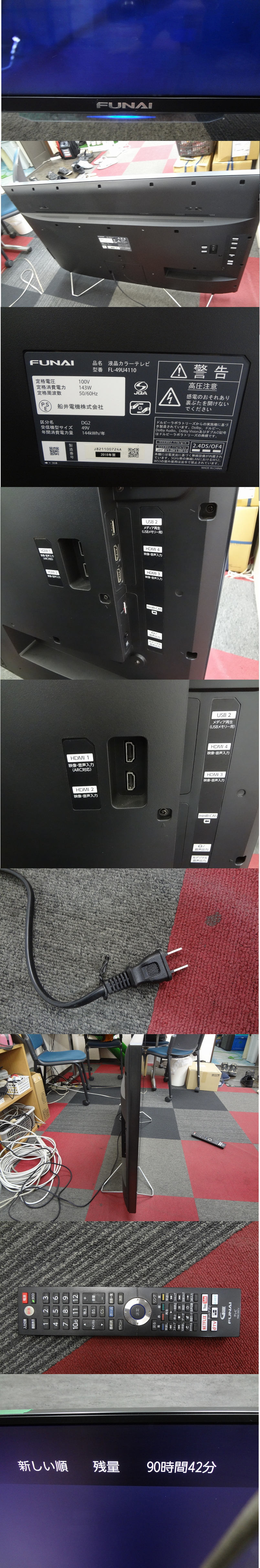 | 商品名 | ★KZか4148 FUNAI 船井電機■液晶カラーテレビ■FL-49U4110■49V型■2018年製■4K 液晶テレビ 録画機能 内蔵HDD■来店 大阪 |
