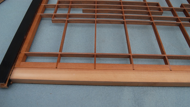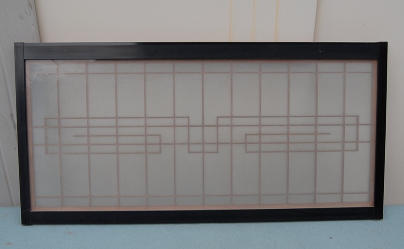 ガラス戸 2枚セット 組子細工 縁:黒塗り 明り取り すりガラス 古民家 アンティーク資材 收藏