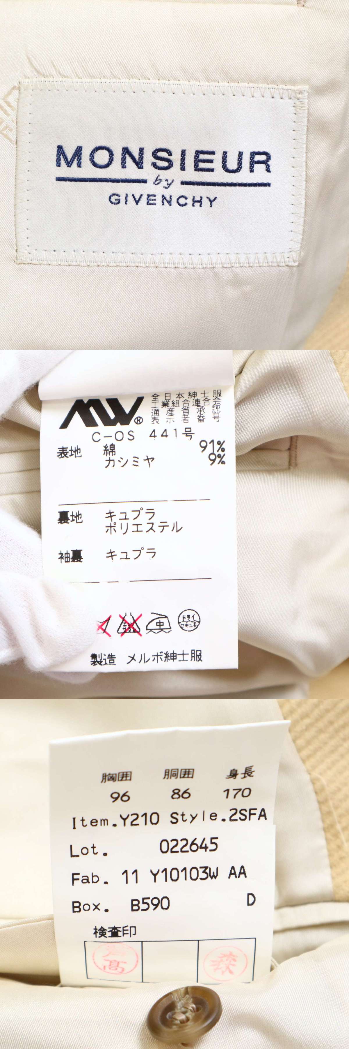 MONSIEUR by GIVENCHY ジバンシイ 秋冬 コーデュロイ★ カシミヤ混 テーラード ジャケット ブレザー Sz.96-86-170 メンズ 收藏
