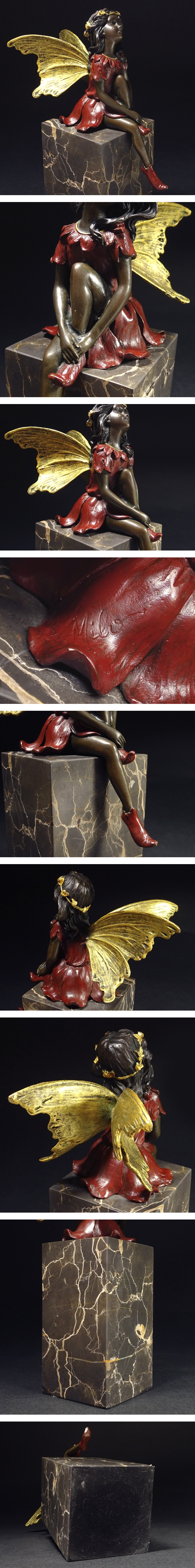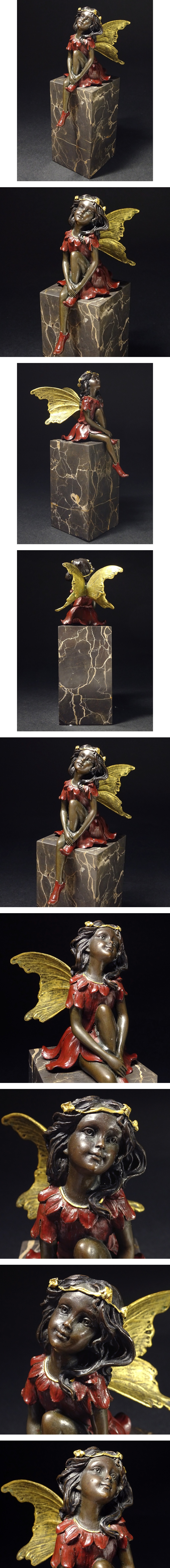 慶應◆現代ポルトガル人気アーティスト【Miro ミロ】作 ブロンズ製『Sitting Fairy Elfin』妖精オブジェ 大理石台 高さ23cm 收藏
