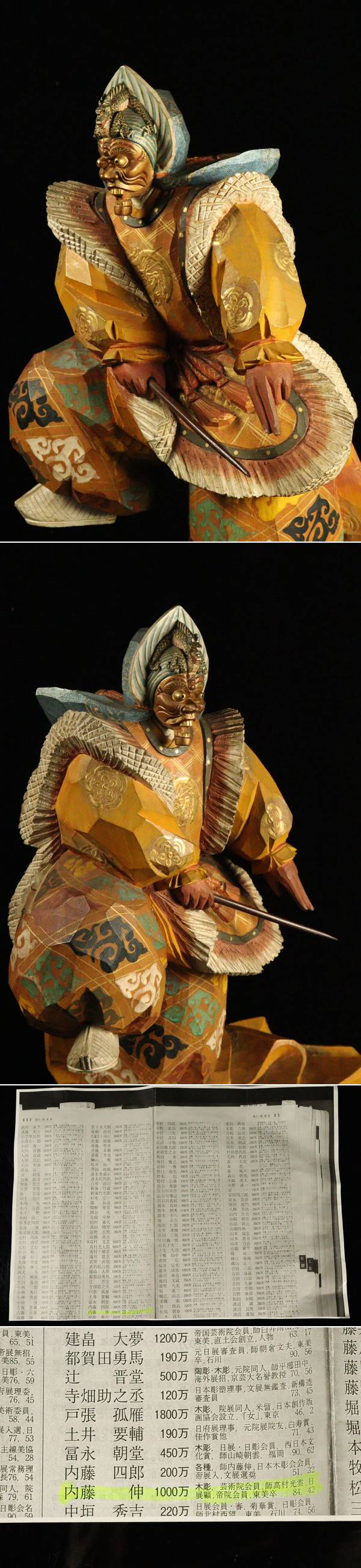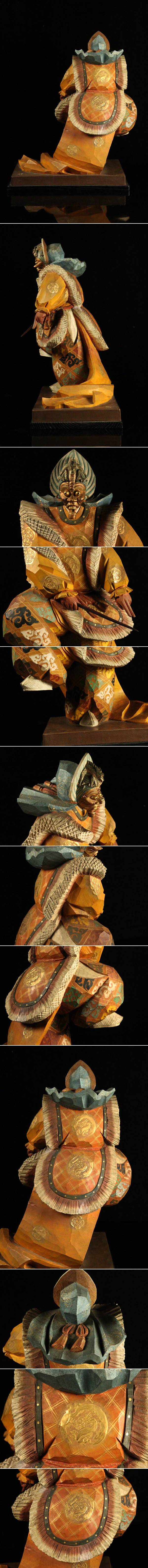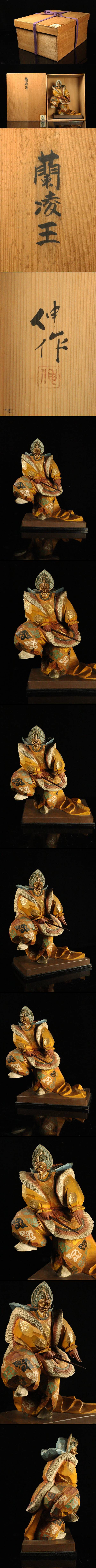 【ASAHI】 高村光雲の愛弟子【 内藤 伸 】秀逸作! 彩色木彫『蘭陵王』置物 高39cm 共箱[71157rp] 收藏