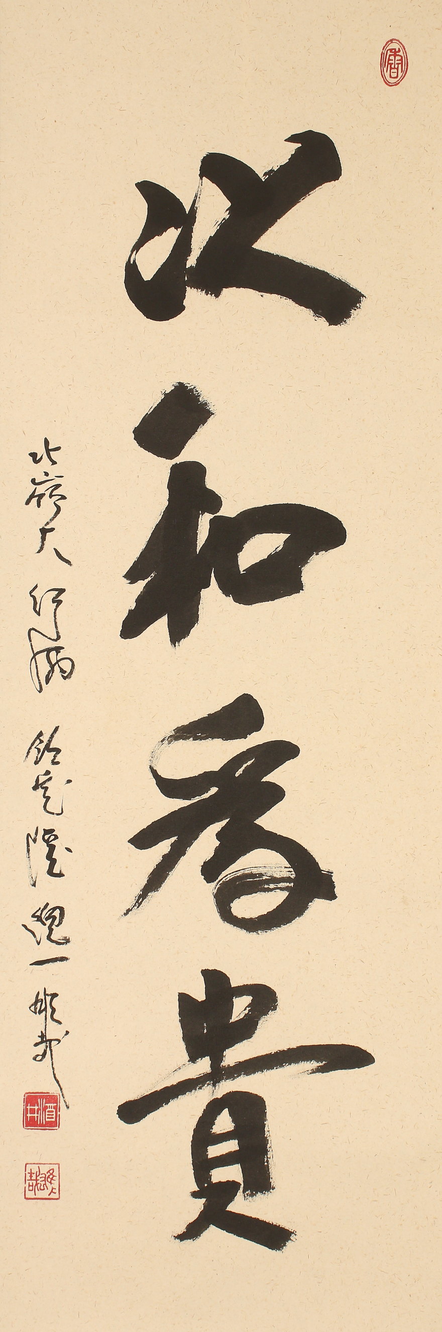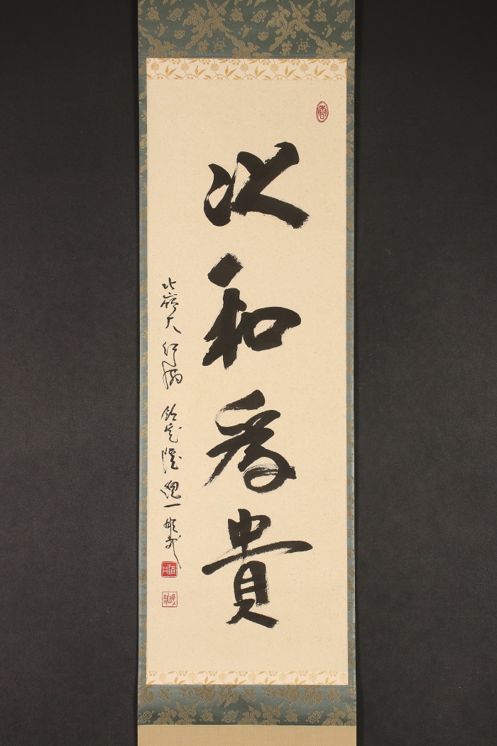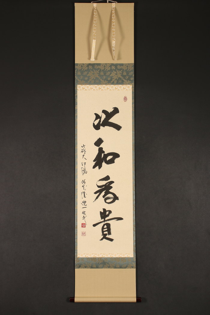 【模写】【伝来】am5173〈酒井雄哉〉書「以和為貴」共箱 天台宗 大行満大阿闍梨 大阪の人 收藏