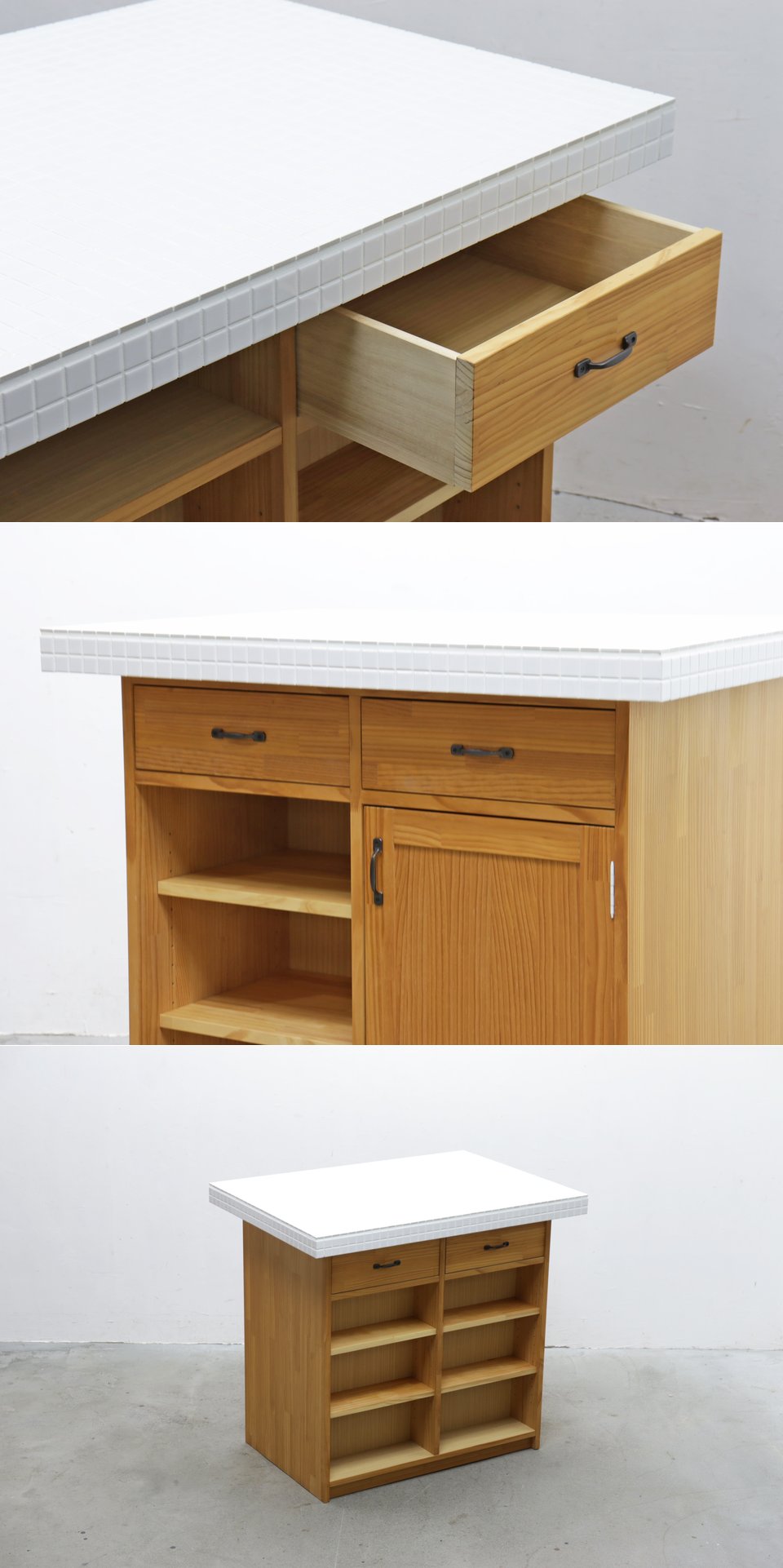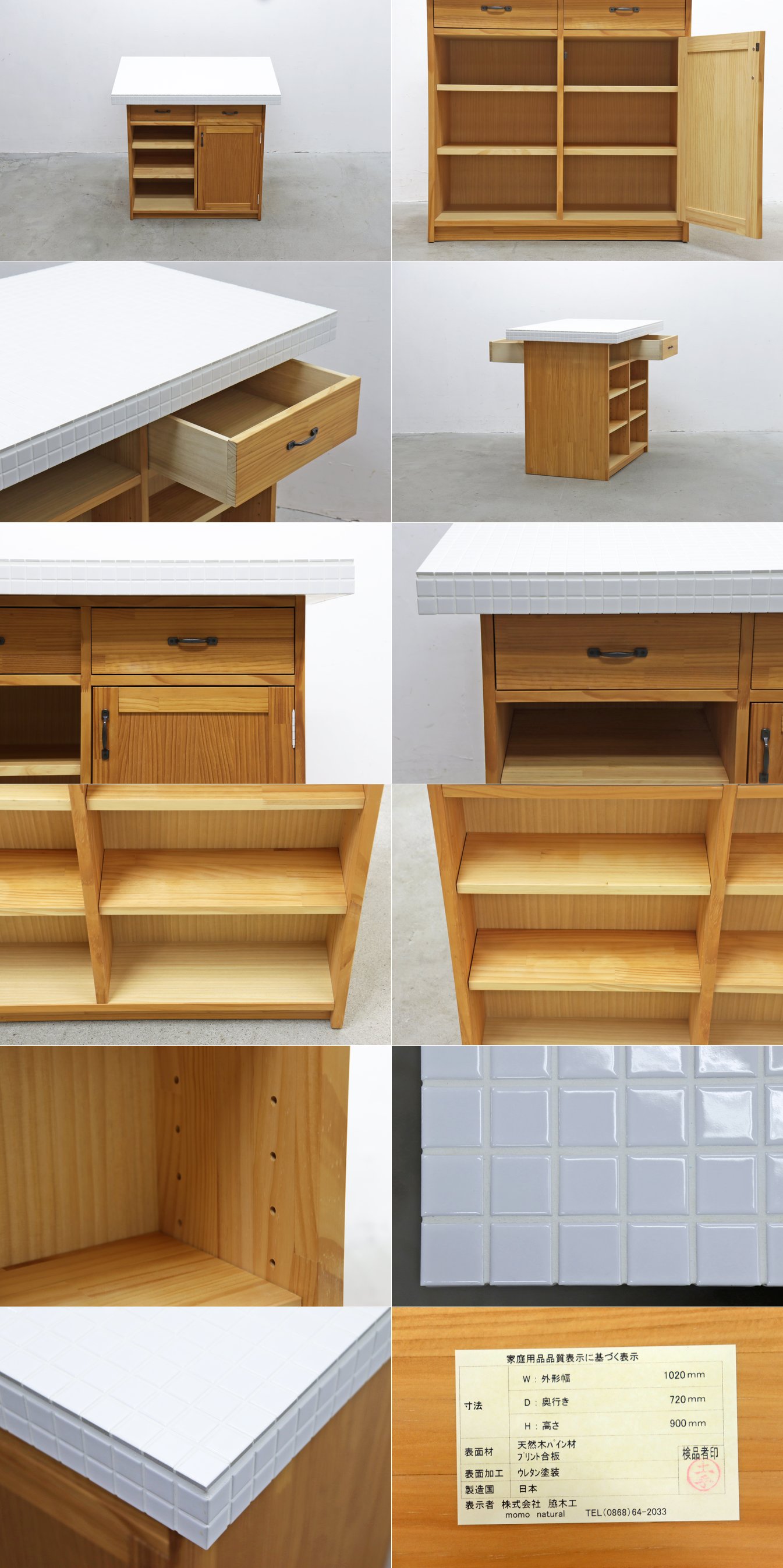 ◆MOMO NATURAL モモナチュラル アイランド カウンター キッチン タイル キャビネット 収納 食器棚 テーブル/北欧アクタス無印/PKA22134◆ 收藏