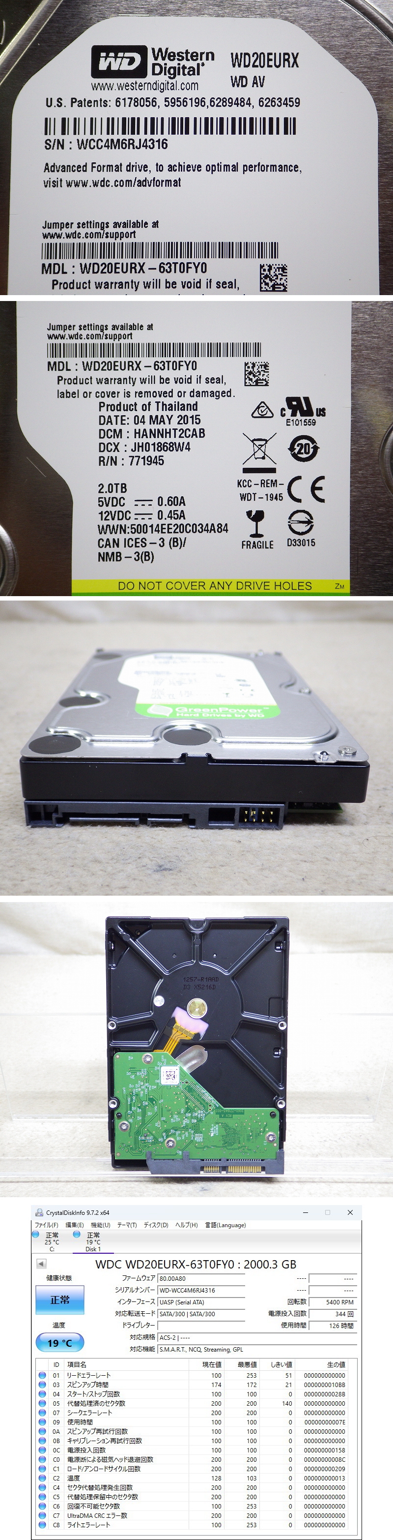 Kネま2258 WD 3.5インチ SATA 内蔵HDD 2TB WD20EURX-63T0FY0 パソコン周辺機器 PCパーツ ハードディスク 收藏