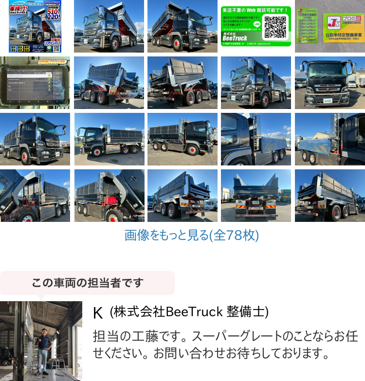 【諸費用コミ】:車検付 令和8年4月迄 H27 三菱ふそう スーパーグレート ダンプ 6×4 3軸2デフ 新明和工業 510 220 收藏