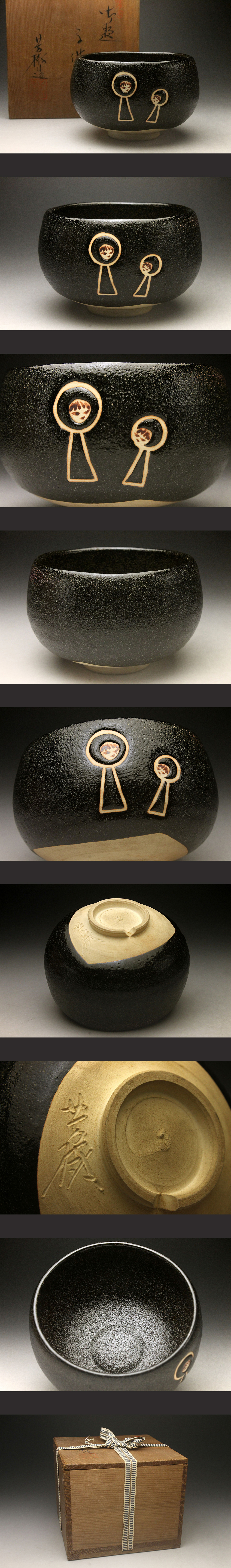 【余韻】 杉浦芳樹 兎月窯 御題 子供 柚子黒 茶碗★共箱 無傷美品<同梱可> 收藏