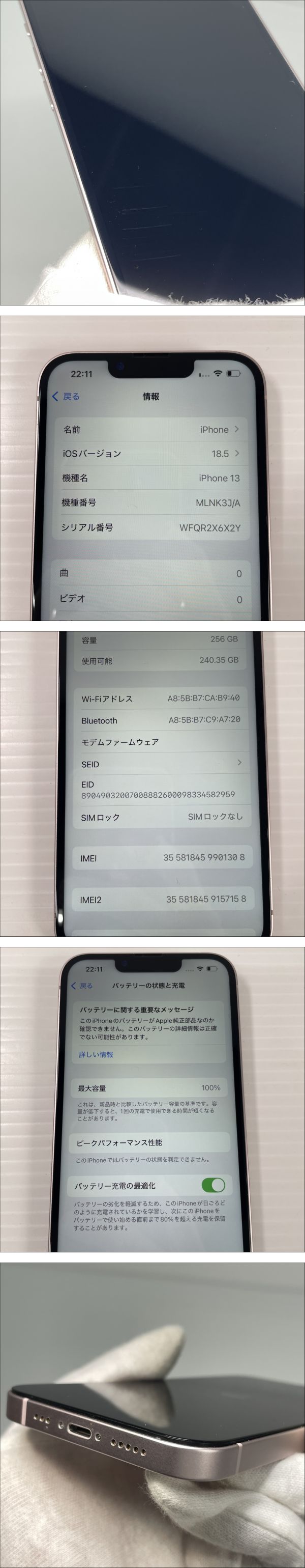 2511M4108 Apple アップル iPhone13 MLNK3J/A 256GB SIMフリー 通電確認済 現状品 收藏
