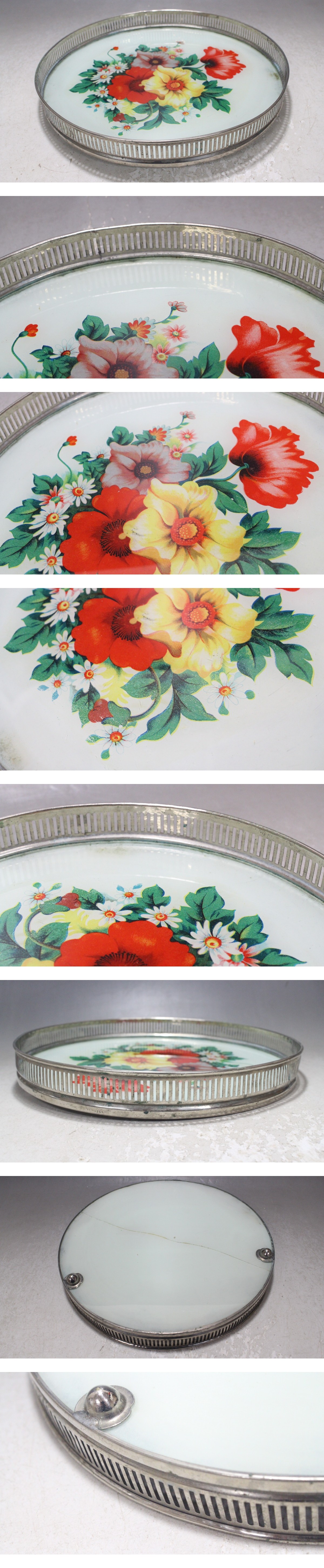 硝子皿 (直径22.6cm/約475g) 時代物 昭和レトロ アンティーク ガラス絵皿 ※割れあり ト30 收藏