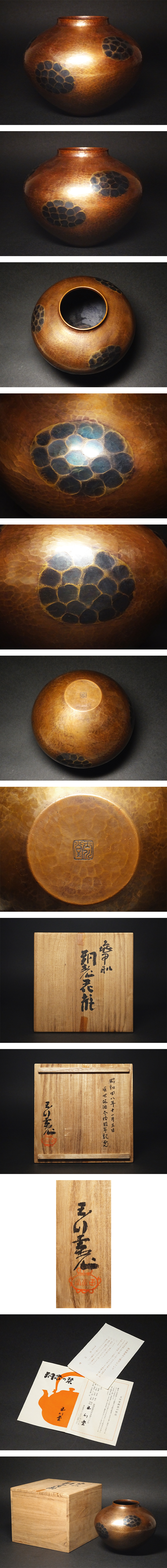 慶應◆【玉川堂】製 亀甲肌銅製花瓶 鎚起銅器 共箱 收藏