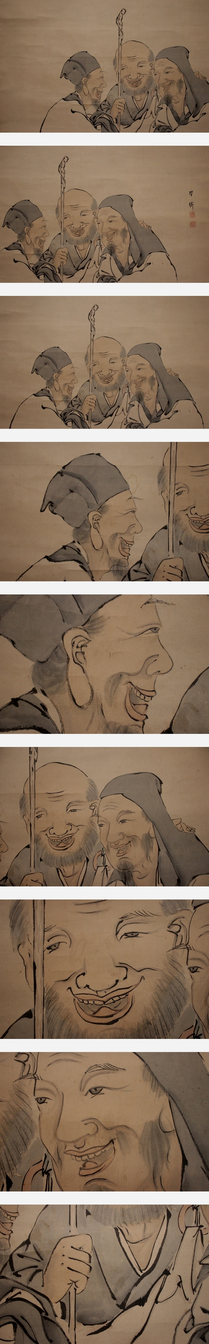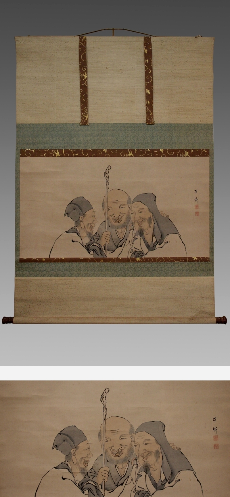 | №2510011【模写】月僊【大幅・虎渓三笑】◆紙本◆合箱◆掛軸 | |