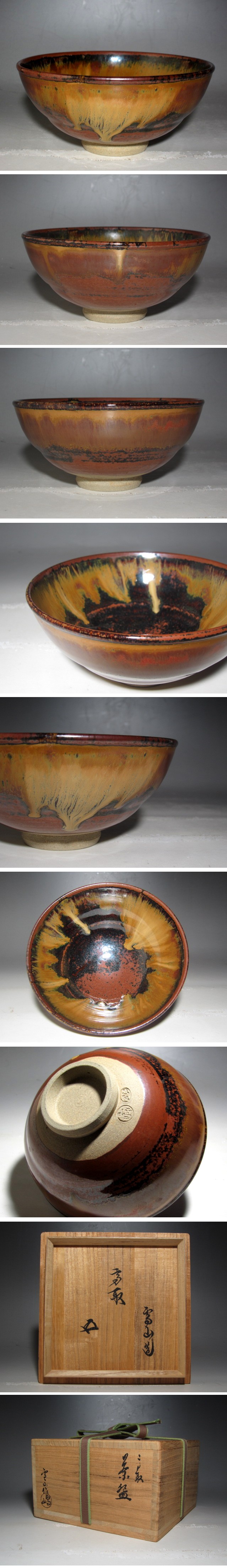 鬼丸碧山作の高取茶碗です。 釉の流れが美しい趣あるお品です。 箱蓋裏に裏千家十五世鵬雲斎の花押があります。 サイズ 直径14cm/高さ6.5cm(多少の誤差はお許しください) 状態 一見して疵やヒビ・直しは見られません。 骨董品という事をご勘案頂き、時代経過のスレや、小さな傷がある場合があるかもしれませんのでご承知置きください。 | |||